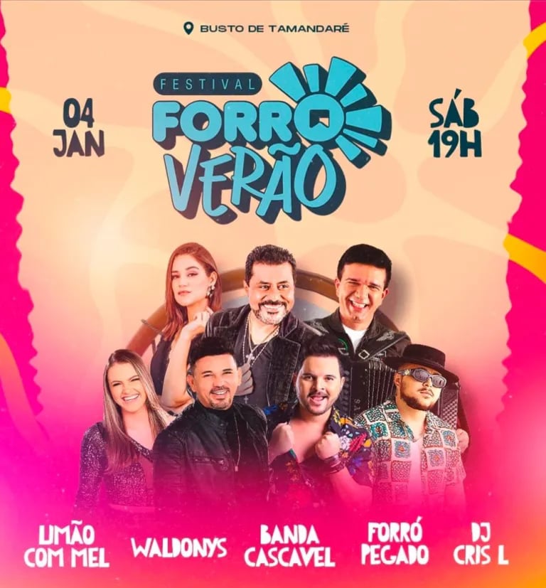 Atrações – De acordo com a programação, a Banda Limão com Mel fará o show de abertura do Forró Verão. Em seguida sobe ao palco o cantor e sanfoneiro cearense Waldonys. Na sequência, muito forró com Deborah e Isaías da Banda Cascavel, com mais de 20 anos de história, encerrando a noite com Forró Pegado, com Douglas Pegador.