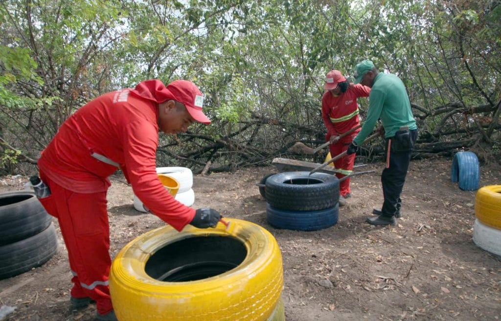 Raissa Fernandes explica que, após os serviços de limpeza, os agentes colocaram areia vegetal para nivelar as áreas, reaproveitaram pneus recolhidos pela Emlur e pintaram para dar cor ao jardim. A Secretaria de Meio Ambiente (Semam) contribuiu com a disponibilização de mudas de árvores nativas.