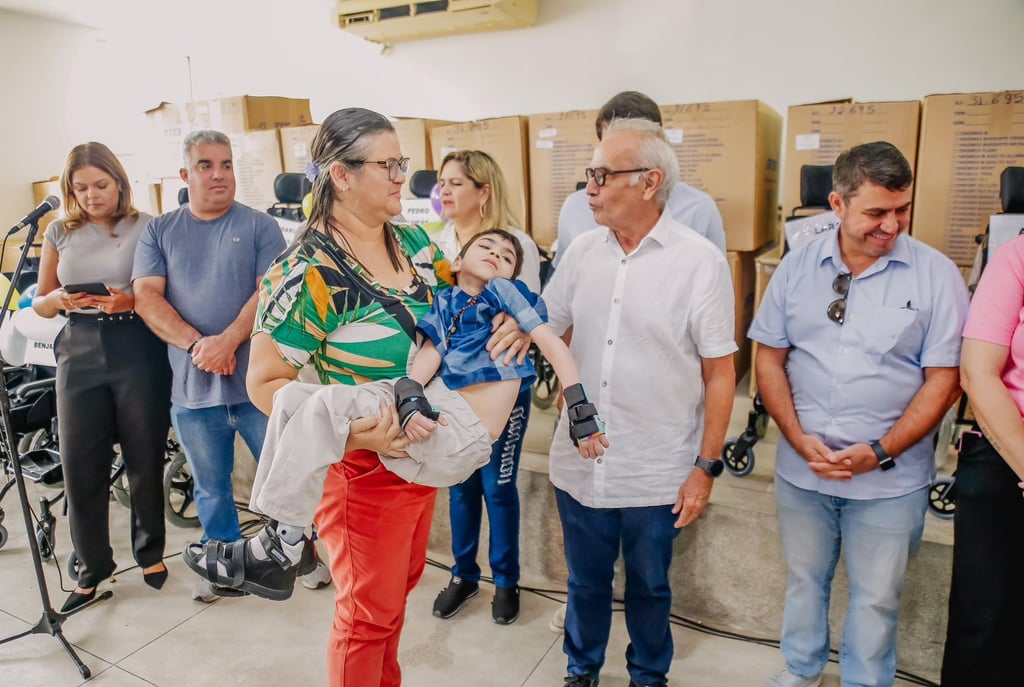 Cícero Lucena entrega 48 carrinhos adaptados para crianças com paralisia cerebral.