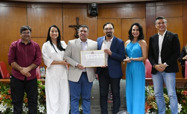 A tarde desta quarta-feira (06) foi marcada na Câmara Municipal de João Pessoa (CMJP) pela realização de sessão solene para entrega do título de cidadão pessoense ao apresentador Cláudio Elias. O vereador Toinho Pé de Aço (PMB) foi o autor da propositura.